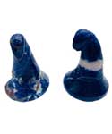 Magical little Witch's Hat carved out of Sodalite crystal and beaming with good energy. Sodalite may assist you energetically with high blood pressure, diabetes, insomnia, autism, and for ideas, endurance, communication, stabilizes emotions, clarifies perception and is great for meditation. Set of 2 Sodalite hats that are 1 1/4" and sizes may vary slightly.