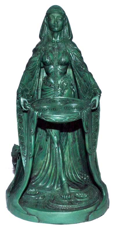 Danu Celtic Goddess. She is shrouded in mystery but has great influence for all aspects of life including: wisdom, fertility, bounty, protection, and more. Hand Painted Resin 5" x 5" x 9"