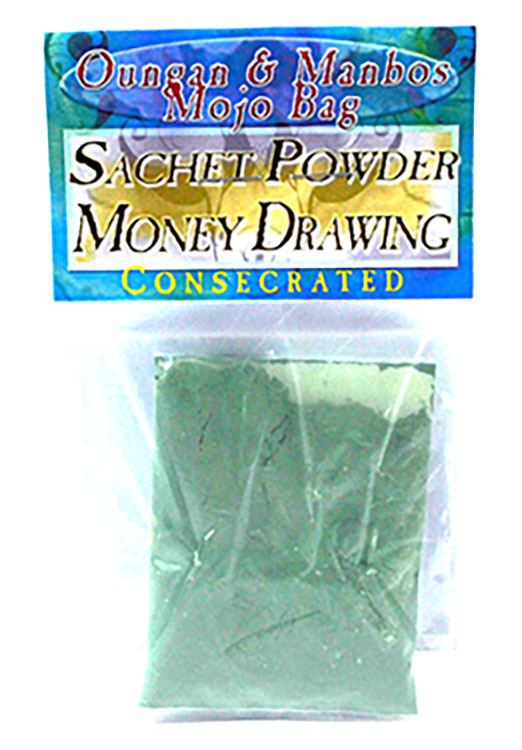 Money Drawing sachet powder is a versatile magical product. Traditionally used to dress important paperwork or petitions, sprinkling on ground where the target will walk over, as a magical carpet sprinkler, container spells, mojo bags, or simply sprinkle on your altar. Safe to use on skin as a magical scented body powder, add to baths, and can be used to dress candle after oil is added. Money Drawing is traditionally used to draw money and abundance. 1/2oz. Colors will vary.