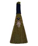 Wicca Broom decorated with a Fatima hand with an evil eye bead. The witch's broom is used in Wicca to cleanse negativity and remove unwanted spirits from your home. The evil eye will protect you from bad luck and bad intentions directed towards you, the Fatima hand will bring happiness and good fortune. Approximately a 9" broom.